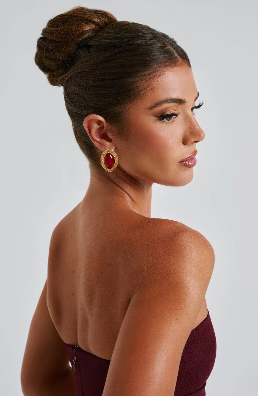Ellipse-shaped earrings with smooth stone centre