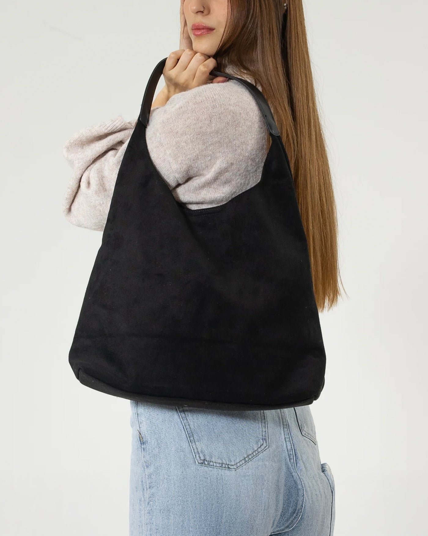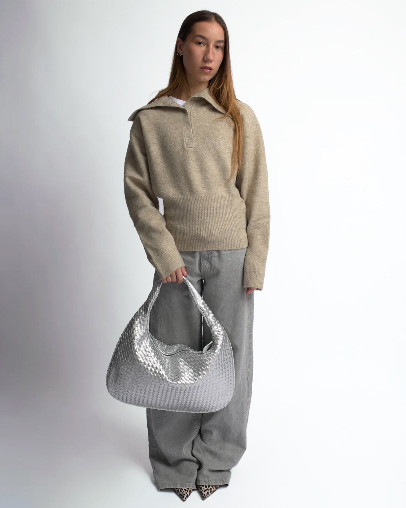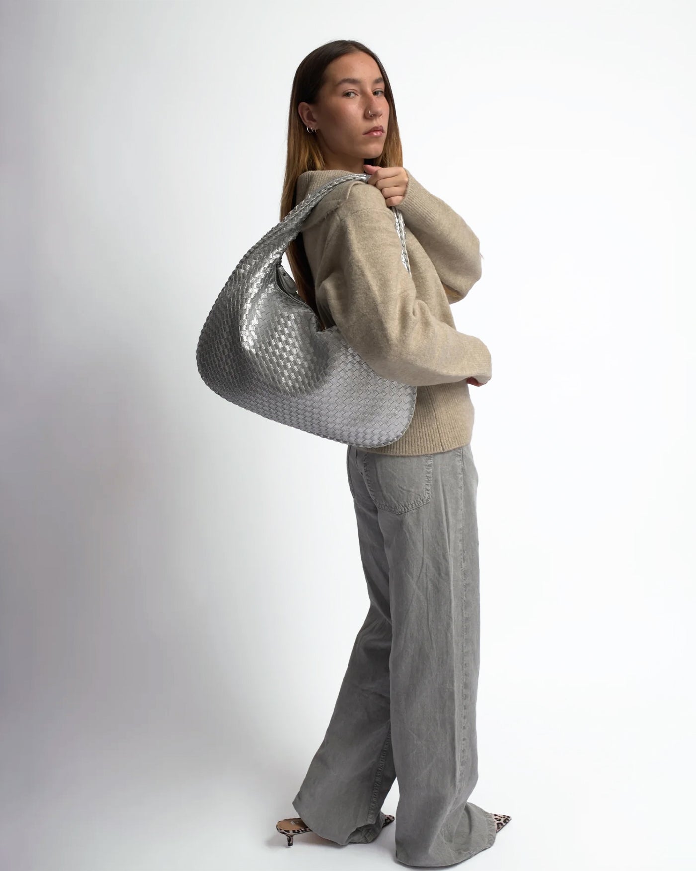 Relaxed Slouch Bag with Sleek Silver Accents