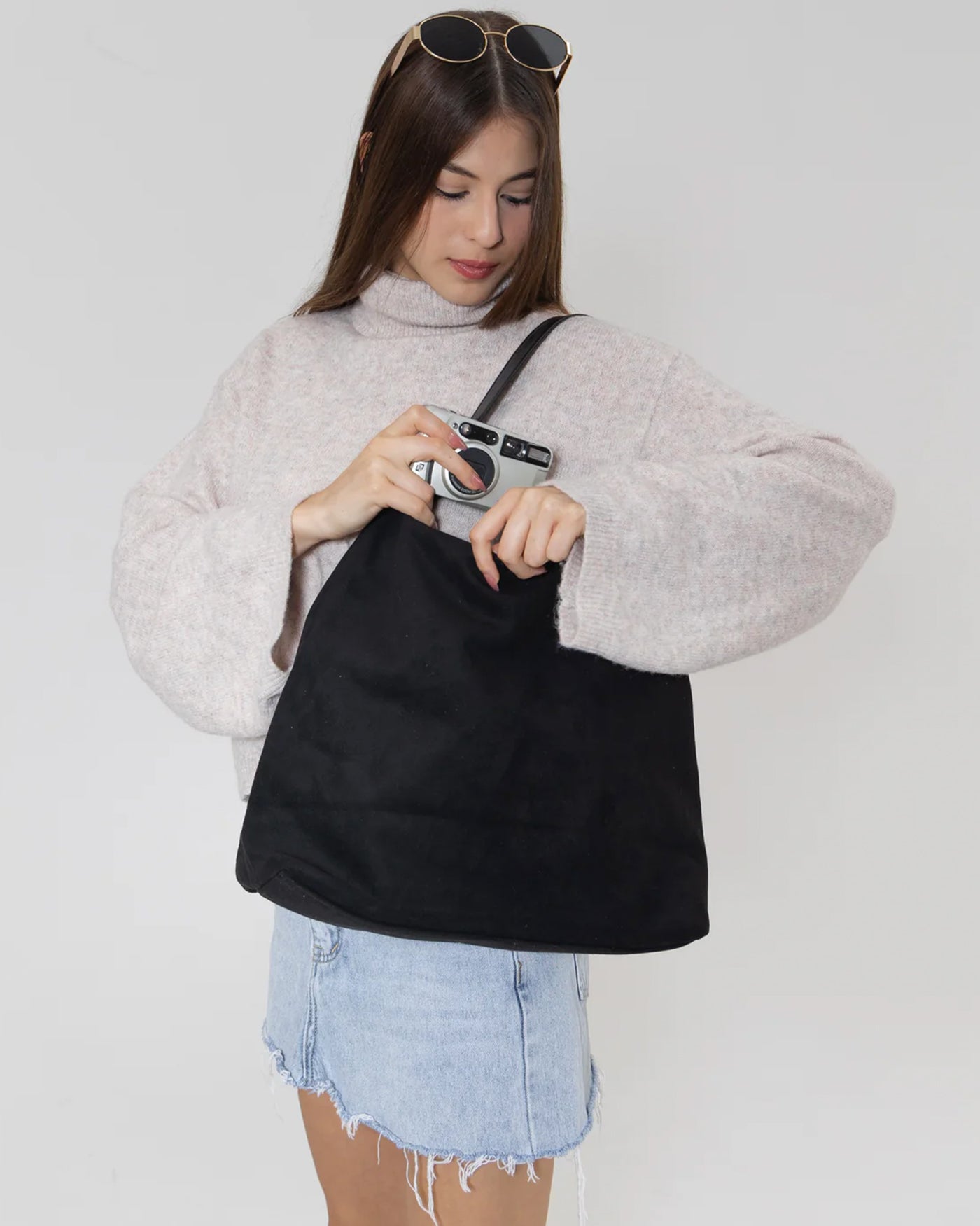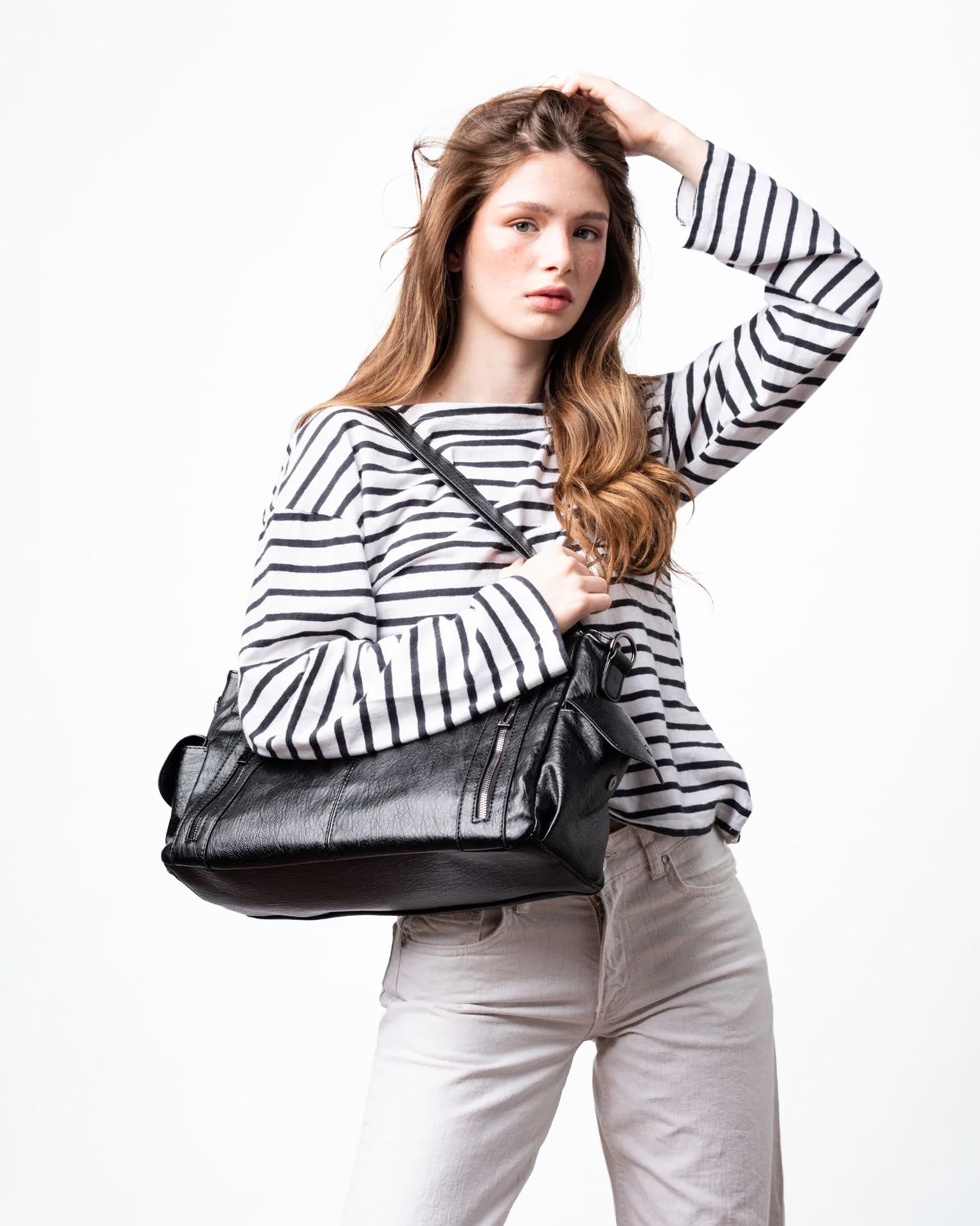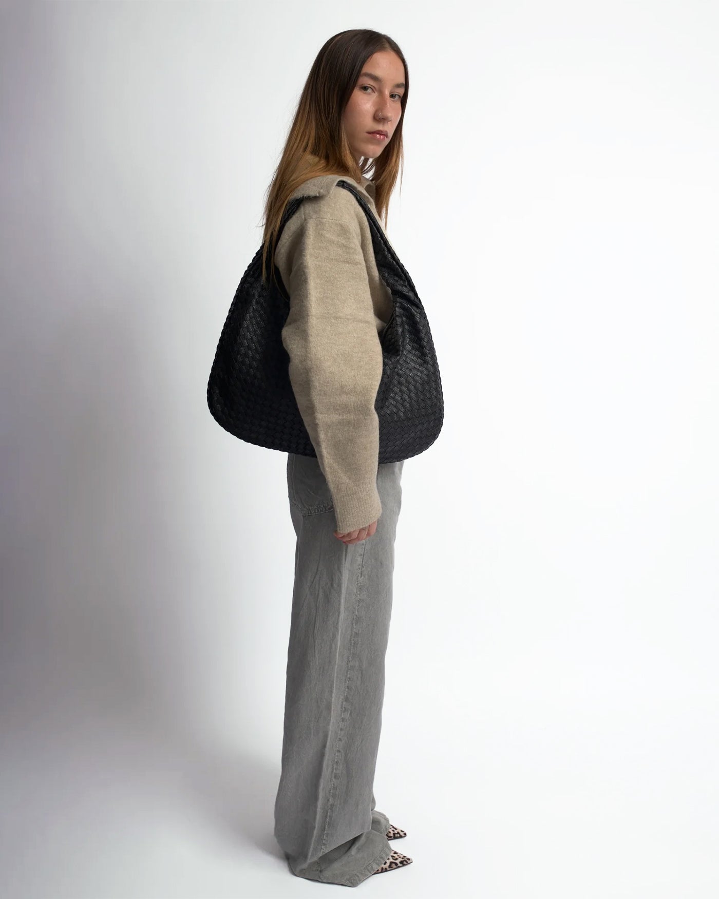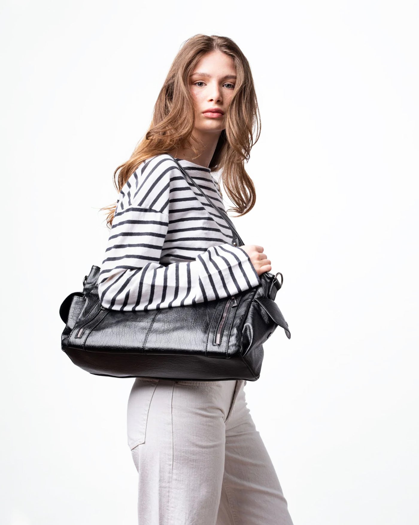 Relaxed Slouch Bag with Sleek Silver Accents