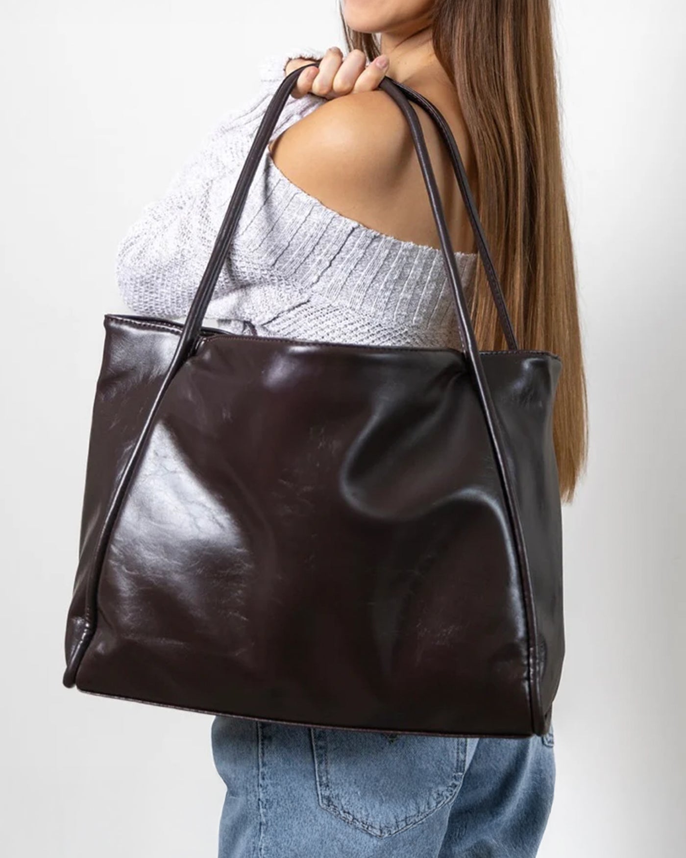 Vintage-Inspired Slouchy Vegan-Leather Tote Bag