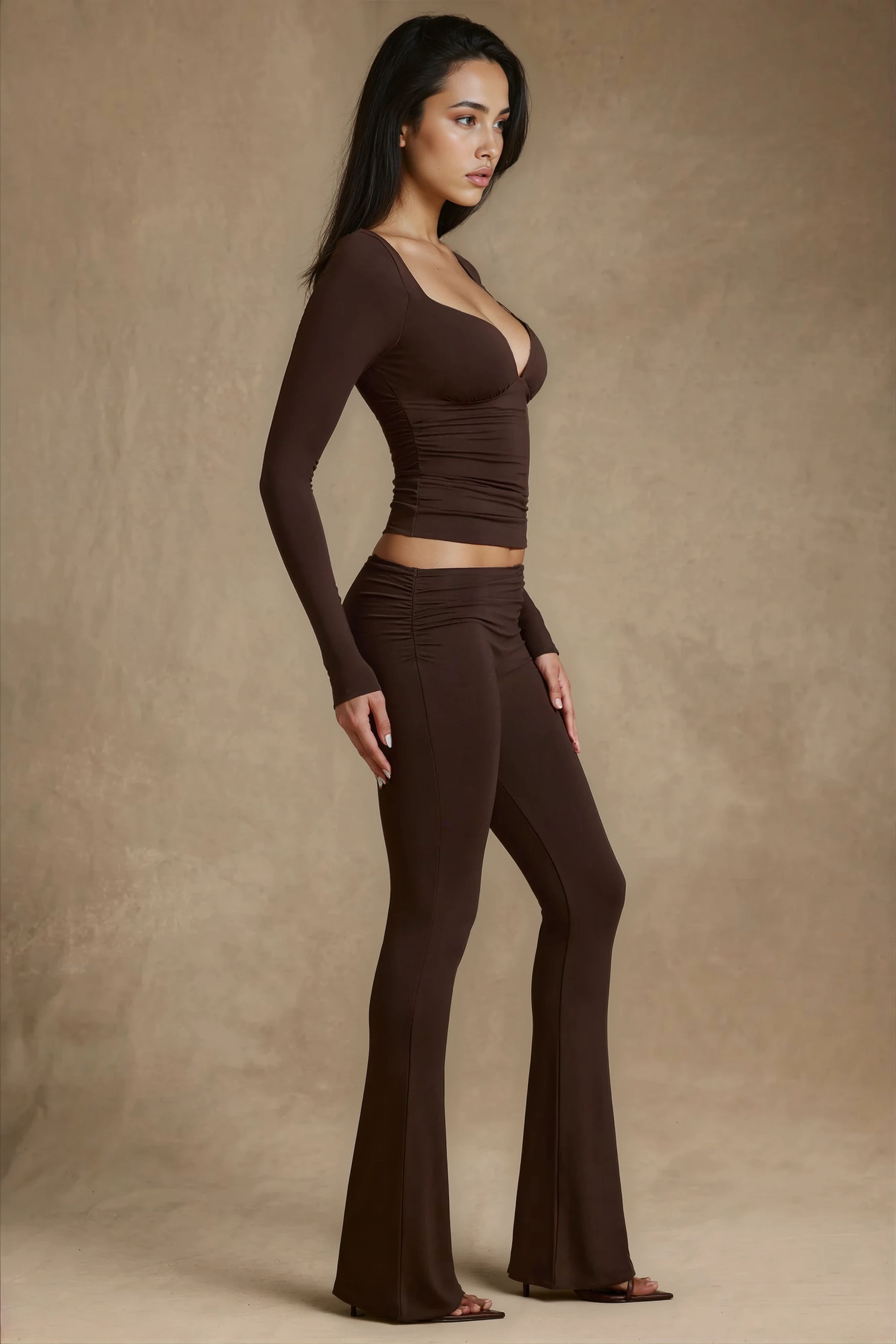 Year-round staples with an edge. Perfect for day-to-night styling, the Auri trousers are designed with an asymmetric mid-low rise waistband that creates a dramatic, sculpted silhouette. They’re cut to a universally flattering and timeless flared-leg silhouette, and crafted from buttery soft, stretchy and breathable jersey made with TENCEL™ Modal fibres, derived from controlled or certified wood sources.