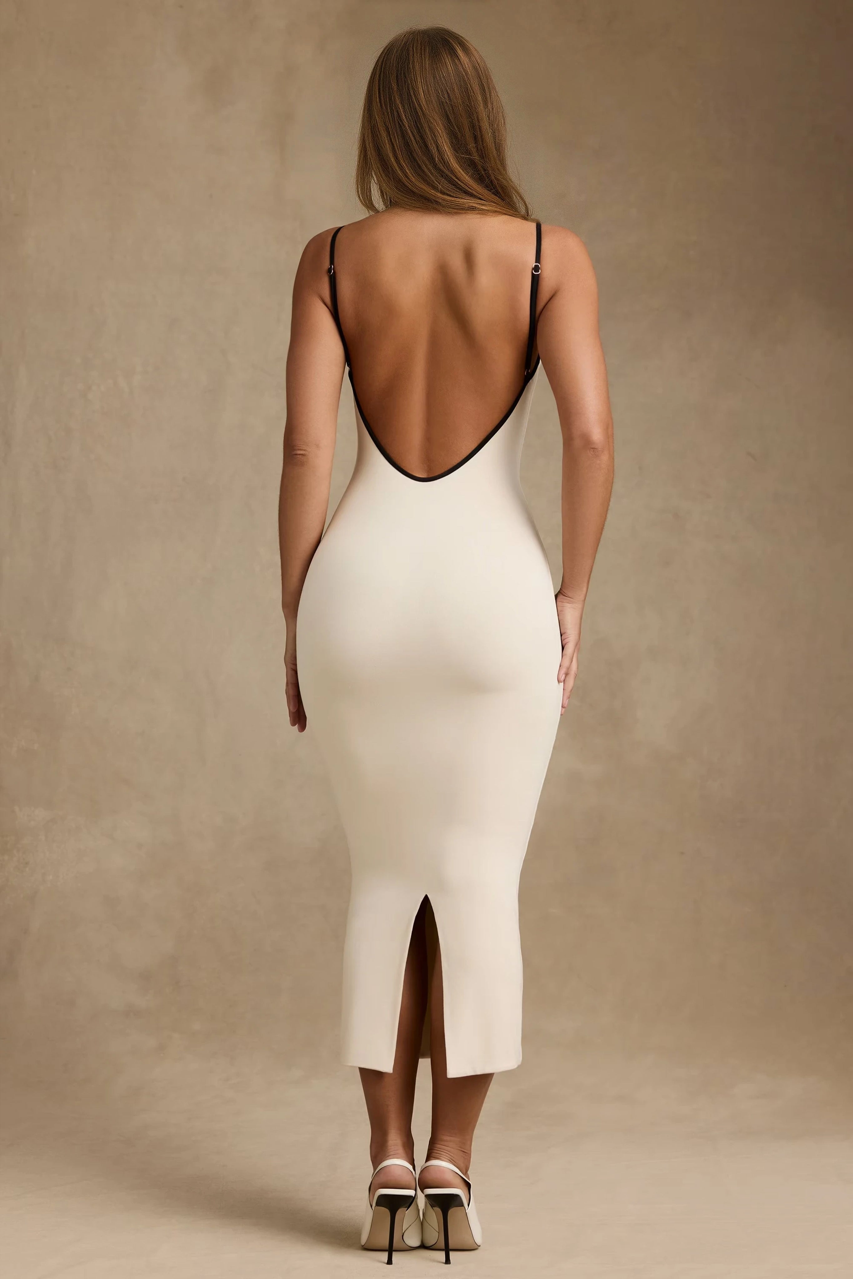 Modal Contrast-Trim Backless Midi Maxi Dress