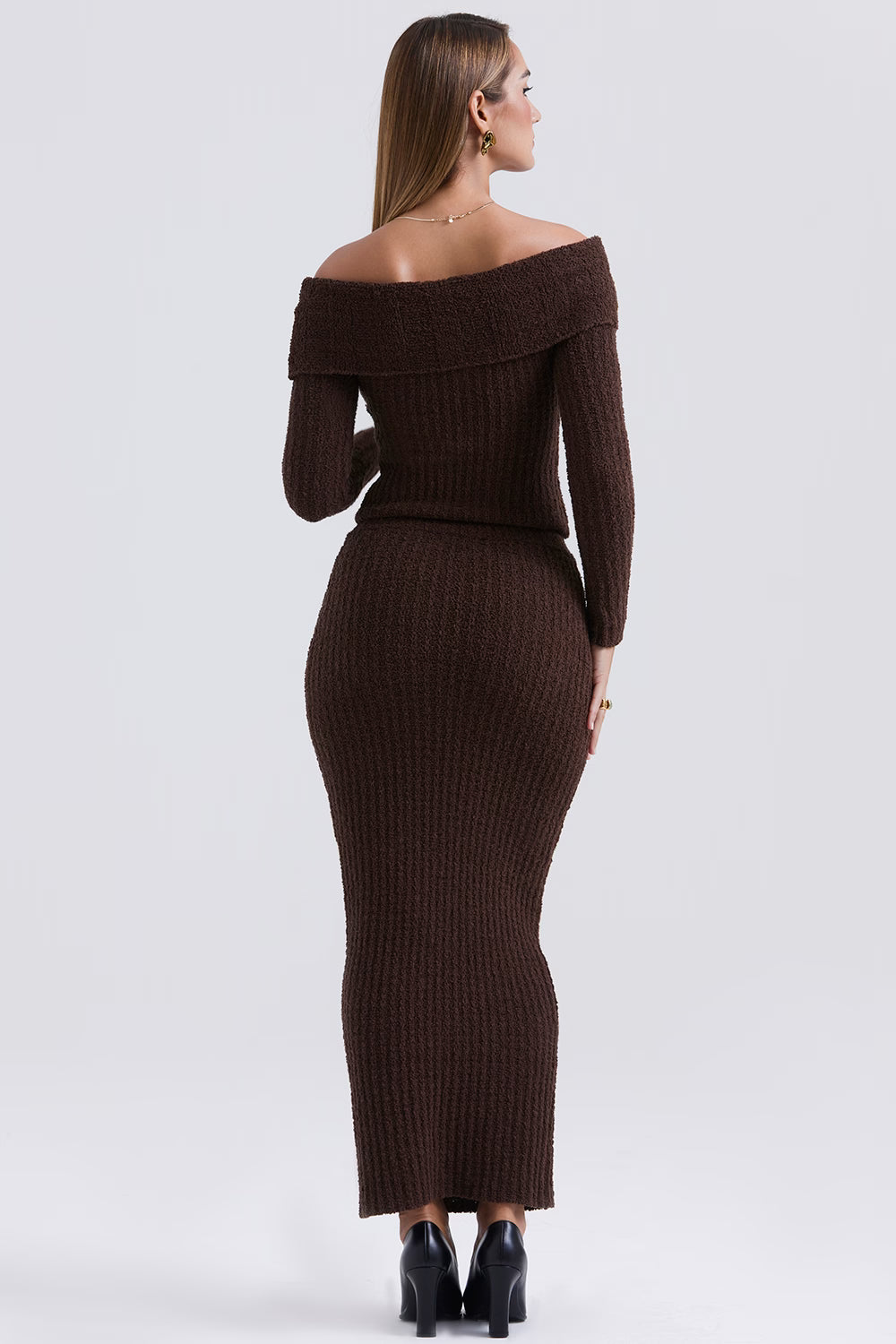 Ribbed-Knit Slash-Neck Top & Maxi Skirt Set